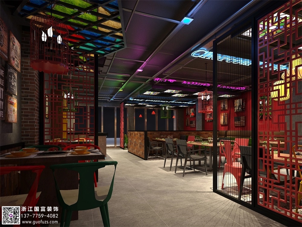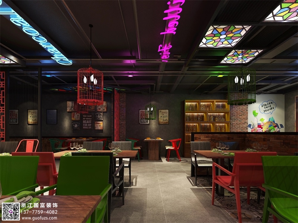 紹興工業風烤魚餐廳裝修設計案例效果圖